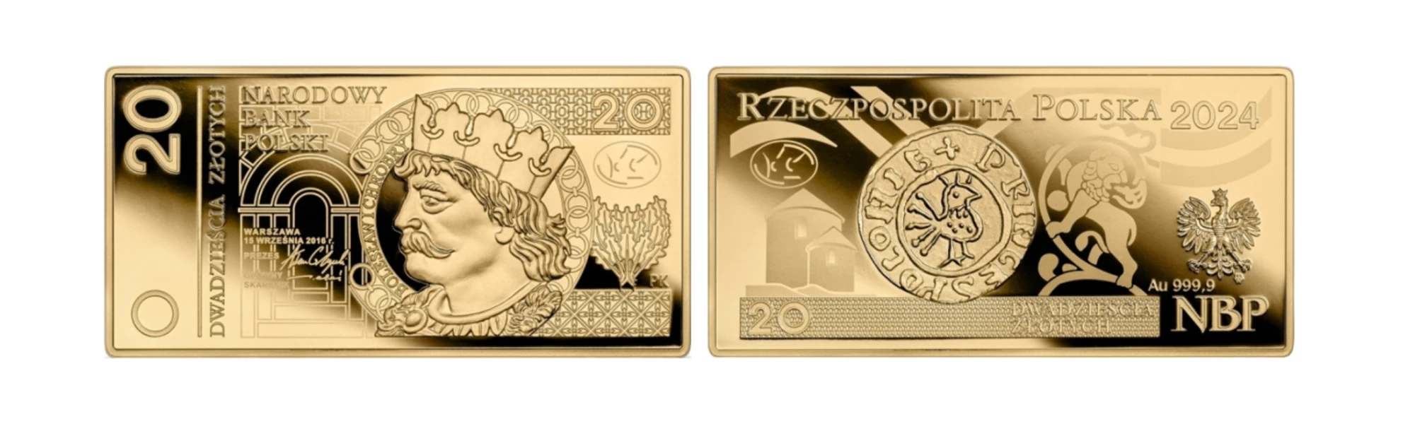 As the second in the series, a gold coin with a face value of 20 PLN has been unveiled, featuring a stylized depiction of a contemporary circulating banknote with the same denomination.