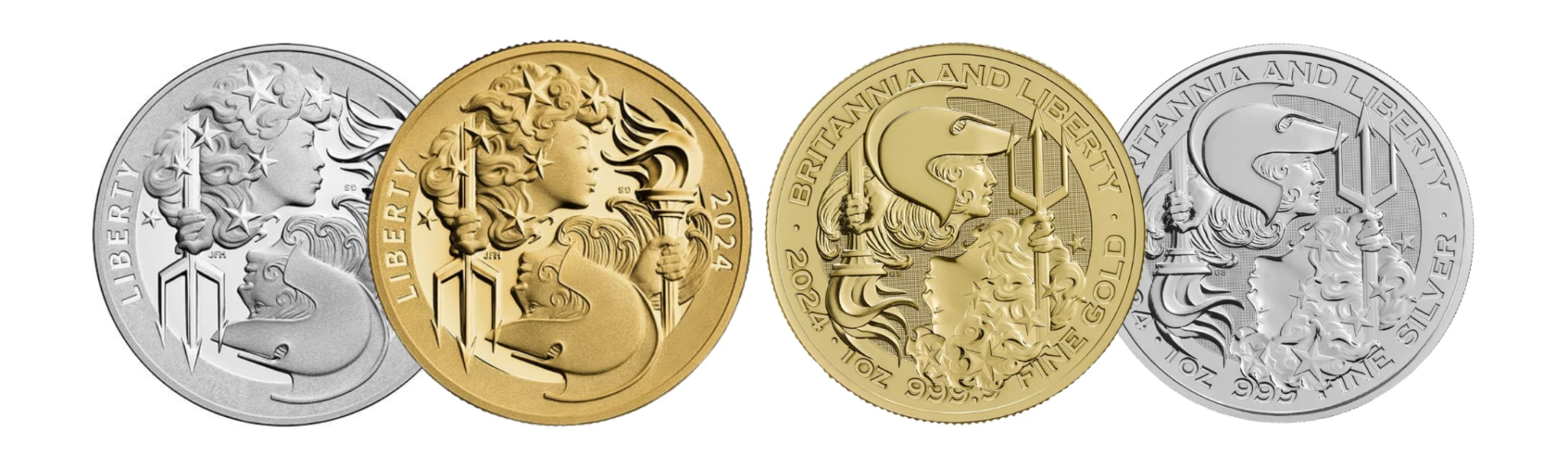 Z kolei Mennica Stanów Zjednoczonych oferuje swoje wersje monet Liberty i Britannia w wersji Proof, wykonanych w 24-karatowym złocie oraz srebrze próby 99,9%.