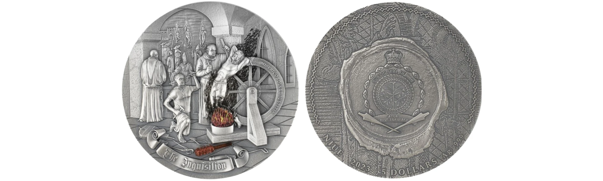 Ta nowa moneta, wykonana z dwóch uncji czystego srebra 999, przenosi nas w mroczne czasy inkwizycji.
